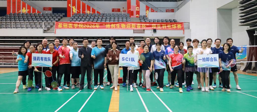 1月15日,我校基础医学院在学校体育馆举行“博剂生物迎新春杯”师生羽毛球混合团体赛。学院领导、参赛教师及各年级学生共计34名选手齐聚赛场,以球会友,共迎新春。 下午3时,比赛正式拉开帷幕。学院党委书记谢沫珠、院长李雄和副院长毛建文共同为本次比赛举行了简短的开球仪式。谢沫珠在致辞中表示,师生羽毛球赛是学院促进师生交流、弘扬体育精神的重要平台,希望参赛选手们赛出风格、赛出水平,赛出健康,更赛出基... [详细]