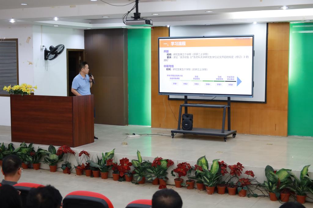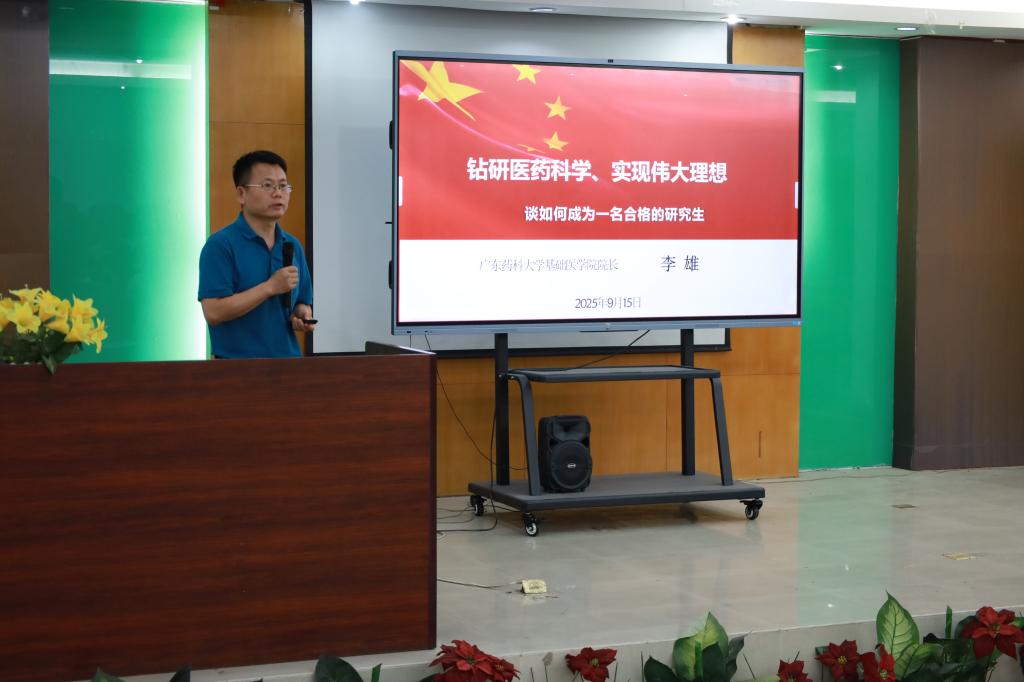 院长李雄以《钻研医药科学、实现伟大理想——谈如何成为一名合格的研究生》为题讲授思政第一课。他带领师生共同学习习近平总书记在中国人民抗日战争暨世界反法西斯战争胜利80周年纪念活动、全国教育大会和党的二十大报告上所强调的内容和精神。希望研究生们积极投身到高水平科学研究中去,牢固树立理想信念,培养对科学研究的热情,明确学习目标和未来人生方向;做好学习和科研规划,脚踏实地,合理安排时间,培养创新思维和严谨科学作风,提高文献阅读能力和科研鉴赏水平;尽快熟悉课题组的研究方向,遇到困难和挫折时保持冷静,勇敢面对挫折,积极寻求帮助,等等,争取早日成为一名合格的研究生,学有所成。