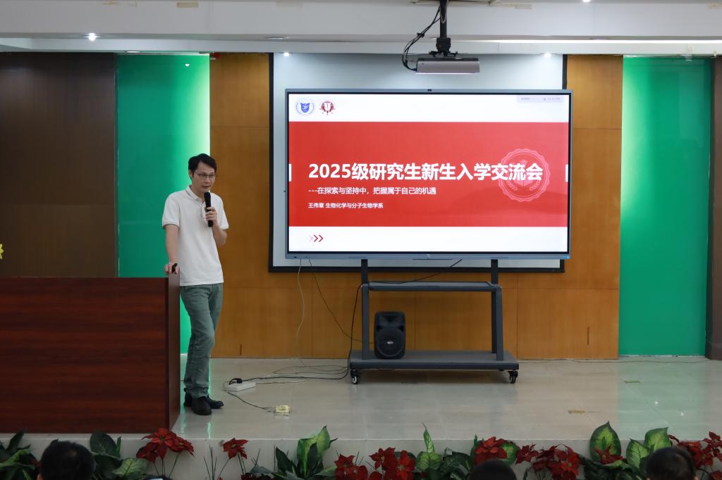 2024级研究生聂元旺同学结合自己在校一年的学习经历,与大家分享科研经验,并提出了四点建议。一是主动与老师沟通,把握科研先机;二是在课堂学习中,坐前排不仅是物理距离,更是学习态度的体现;三是平衡生活,提前规划,量力而行,做“会学习”的研究生;四是勇敢尝试,不给三年的青春留遗憾。