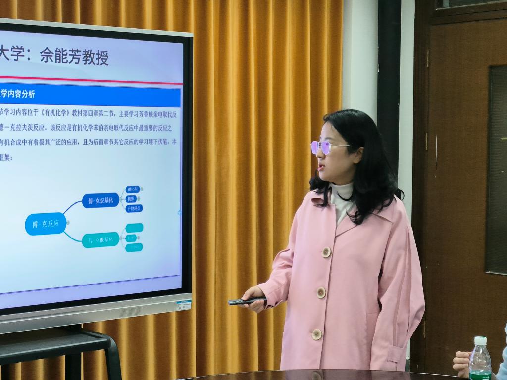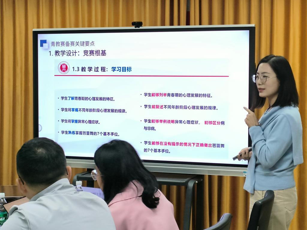 会上,李莉霞与王欣两位老师结合校外培训所学系统分享了青教赛的备赛要点与核心经验。她们强调教学设计是比赛的基石,须紧扣立德树人根本任务,自然融入课程思政并体现学科前沿,整体过程力求达到“凤头—猪肚—豹尾”的艺术效果。在课堂展示环节,她们指出应善用启发式提问与生动类比,增强教学感染力。两位老师还通过解析往届获奖案例,为大家提供了课堂互动设计与高水平课件制作的实用范本。
